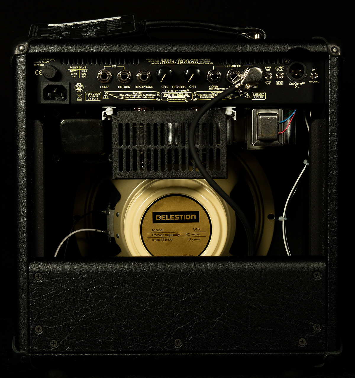 Cabinet Simulation - Direct Live/Recording Output: Built-in Mesa CabClone Cab Simulator with Internal Amp Load & Headphone Output - Featuring Closed Back & Open Back Cabinet Simulations, Speaker On/Off and Ground Lift Switches