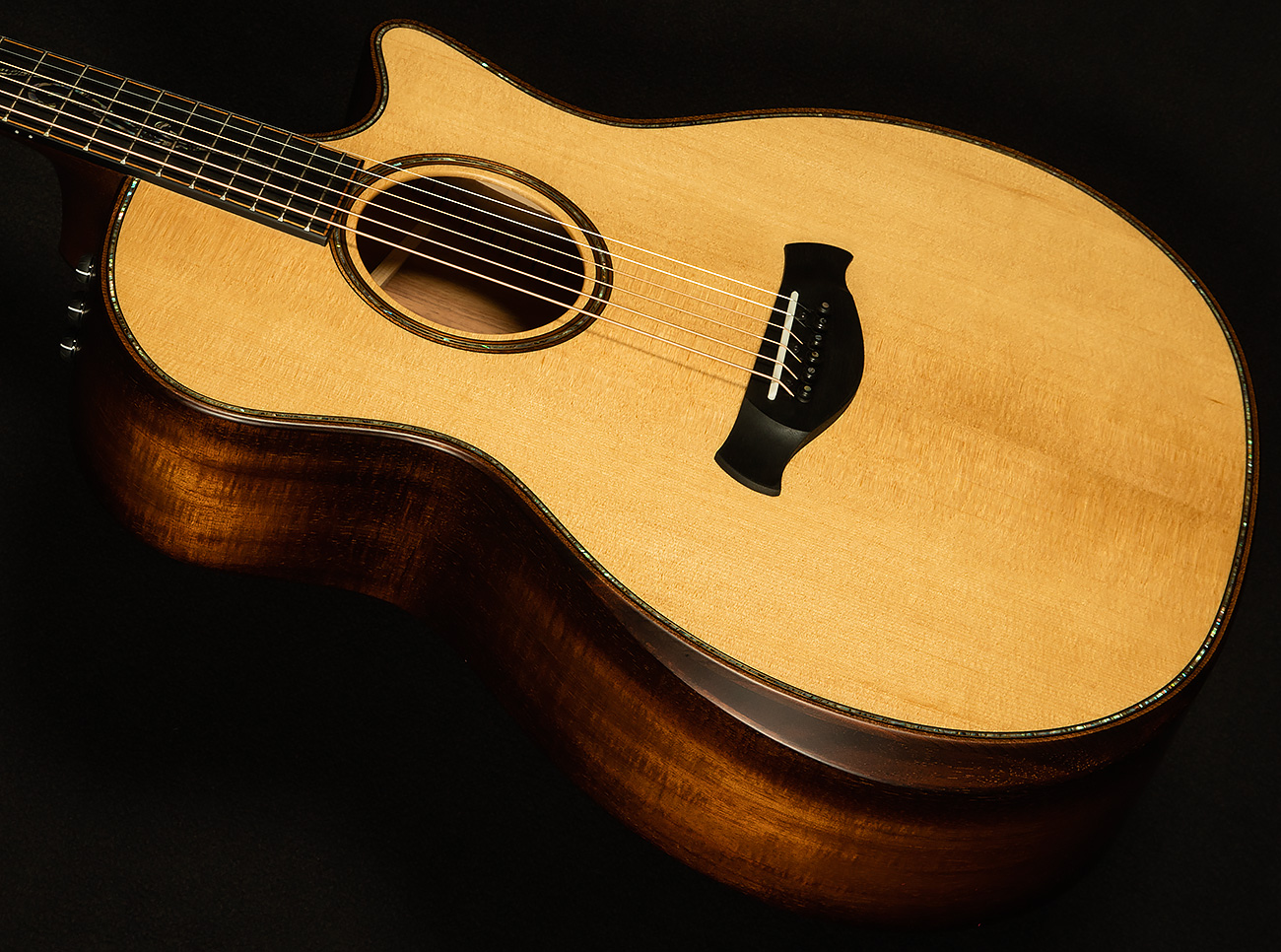 Not that you'll be able to sleep, because they sound so good that you'll want to stay up all night playing them! The torrefied spruce top and the koa back and sides conspire together to bring you warm, deep, clear lows to go with woody, detailed midrange and classic Taylor sparkle and shimmer in the highs. This sort of tonewood pairing would ordinarily result in an addictive sonic cocktail, but Taylor pushed these guitars over the top by incorporating their revolutionary V-Class bracing!