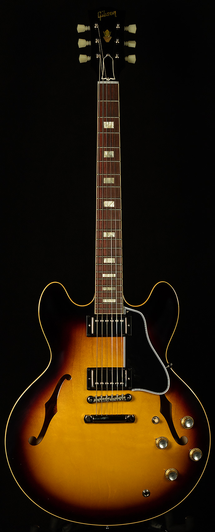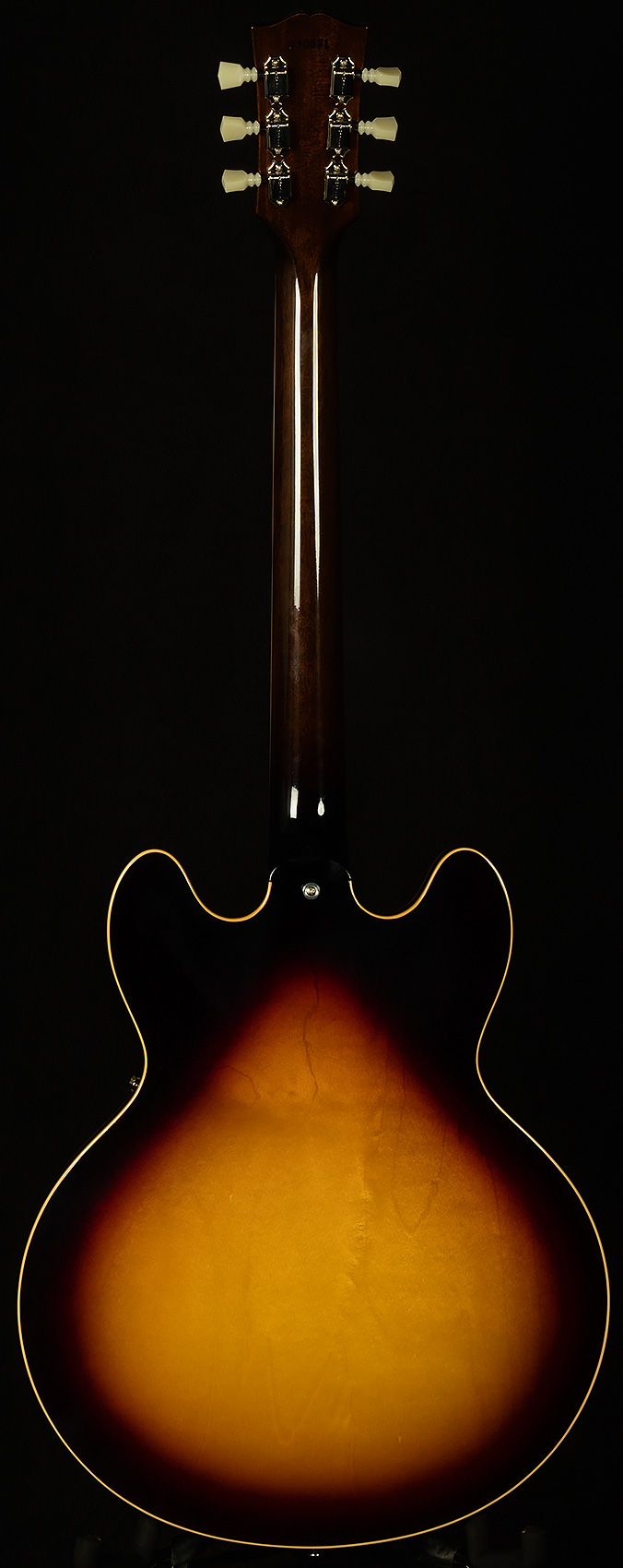 The necks are also worth writing home about. Gibson outfitted these semi-hollow sweeties with a ’64 neck profile that is scarily accurate, and that means something coming from me. I worked at a guitar shop in Kalamazoo, Michigan—the home of Gibson—for several years, so I’ve played plenty of old 335s. If you put a blindfold on me, I couldn’t tell the difference between this reissue and a real vintage neck. The VOS finish makes the neck feel like your favorite pair of sweatpants, except way more stylish.