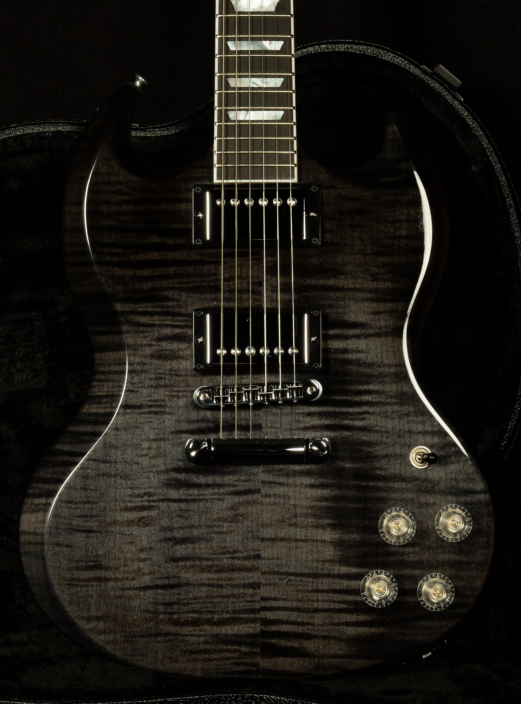 The new Gibson SG Modern incorporates many contemporary updates that players have embraced and it’s much more than a classic “solid guitar;" it’s a hybrid between an SG and a Les Paul. Shaped and scarfed like a classic SG, the body is crafted with a AA maple top and mahogany back--characteristic of a Les Paul. This combination is renowned for its resonance and sustain. The genuine ebony 24-fret compound radius fingerboard and asymmetrical slim-taper neck allow fast and silky access to the highest frets. A pair of calibrated BurstBucker Pro Alnico V humbuckers deliver firepower and the push-pull controls allow you to switch between the Gibson humbucker and the single-coil sounds, both of which have defined so many genres of music across multiple generations. Upscale appointments include Read More...
