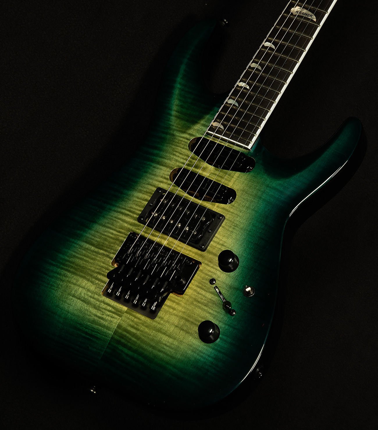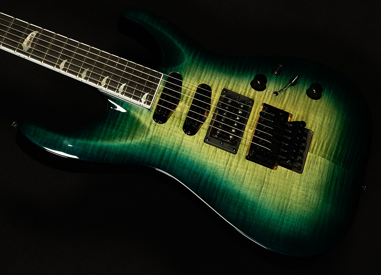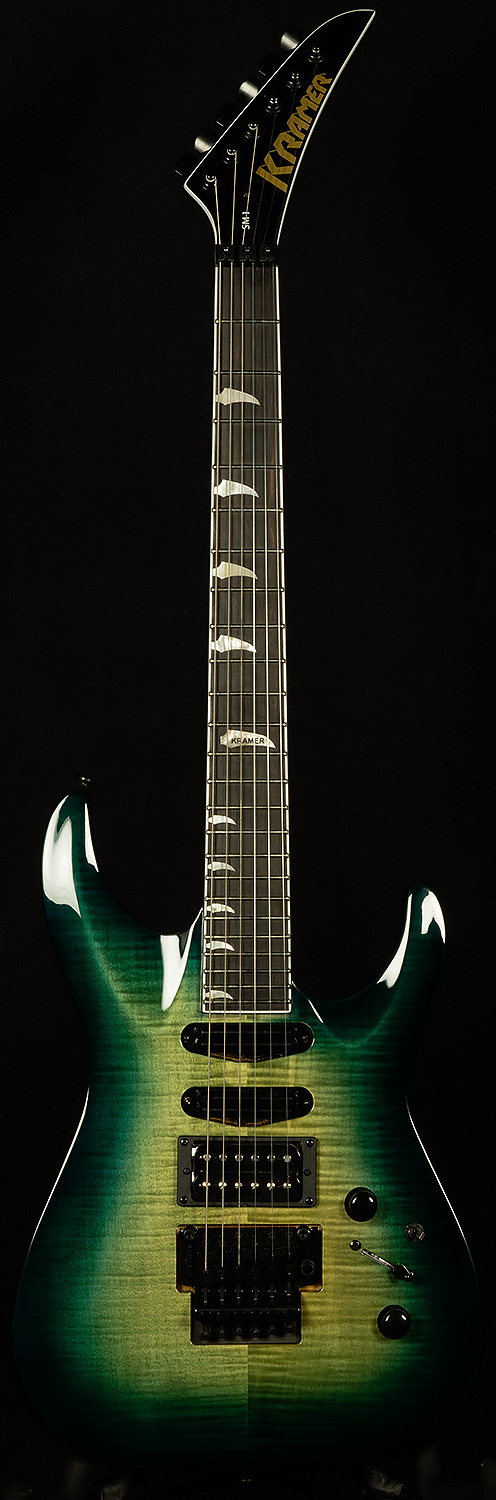 The new SM-1 Figured is part of Kramer's Original Collection and introduces the Kramer name to a new generation with a neck-through, double-cutaway mahogany body, AAA flamed maple veneer, ebony fingerboard, Seymour Duncan Cool Rails and JB humbucker pickups, a Floyd Rose 1000 series tremolo, and a Floyd Rose R2 1000 series locking nut.