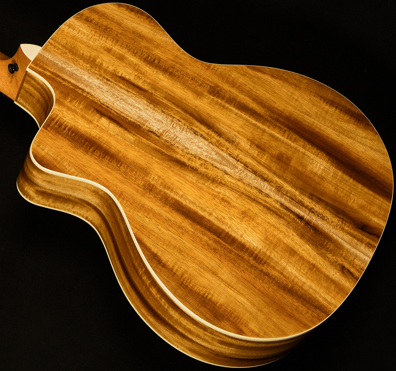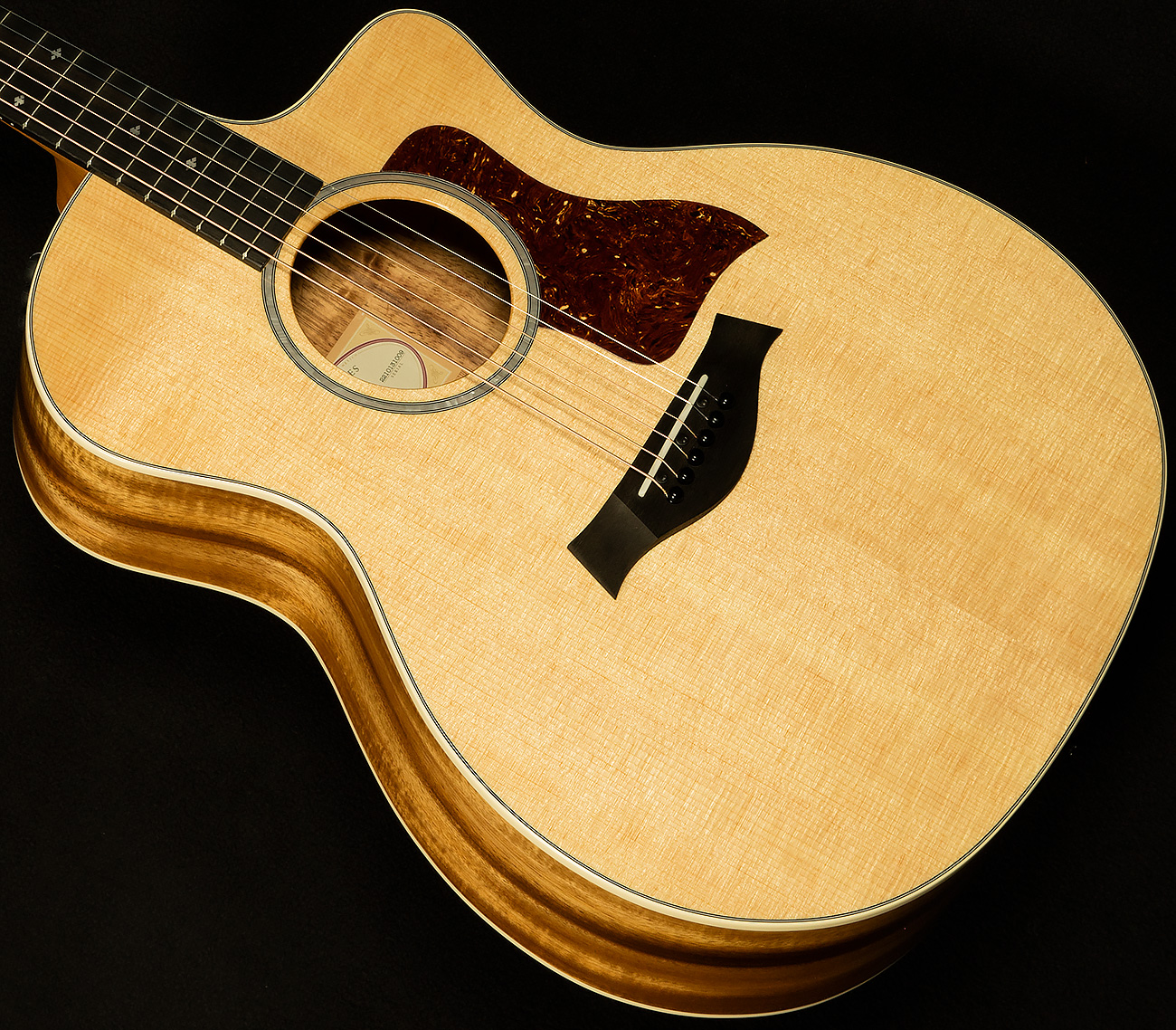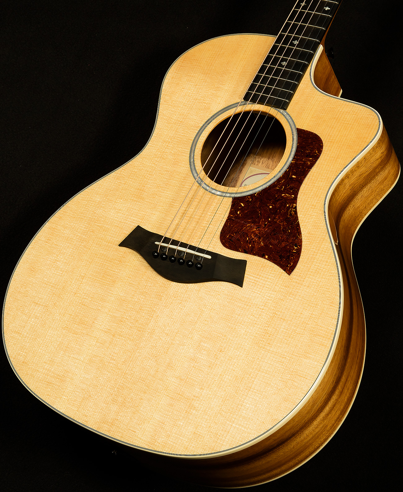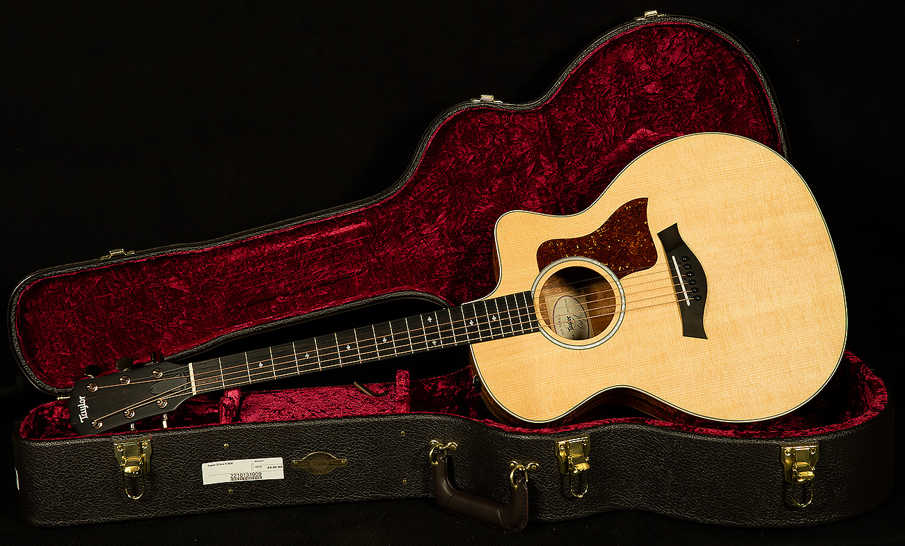 What sets the 214ce DLX apart, however, is its striking cosmetic appointments. The 214ce-K DLX places the beauty of koa on center stage, and it is positively glorious. It also features a gloss top, an elegant bound body, stylish fingerboard inlays, a premium acrylic rosette, and a deluxe Taylor hardshell case.