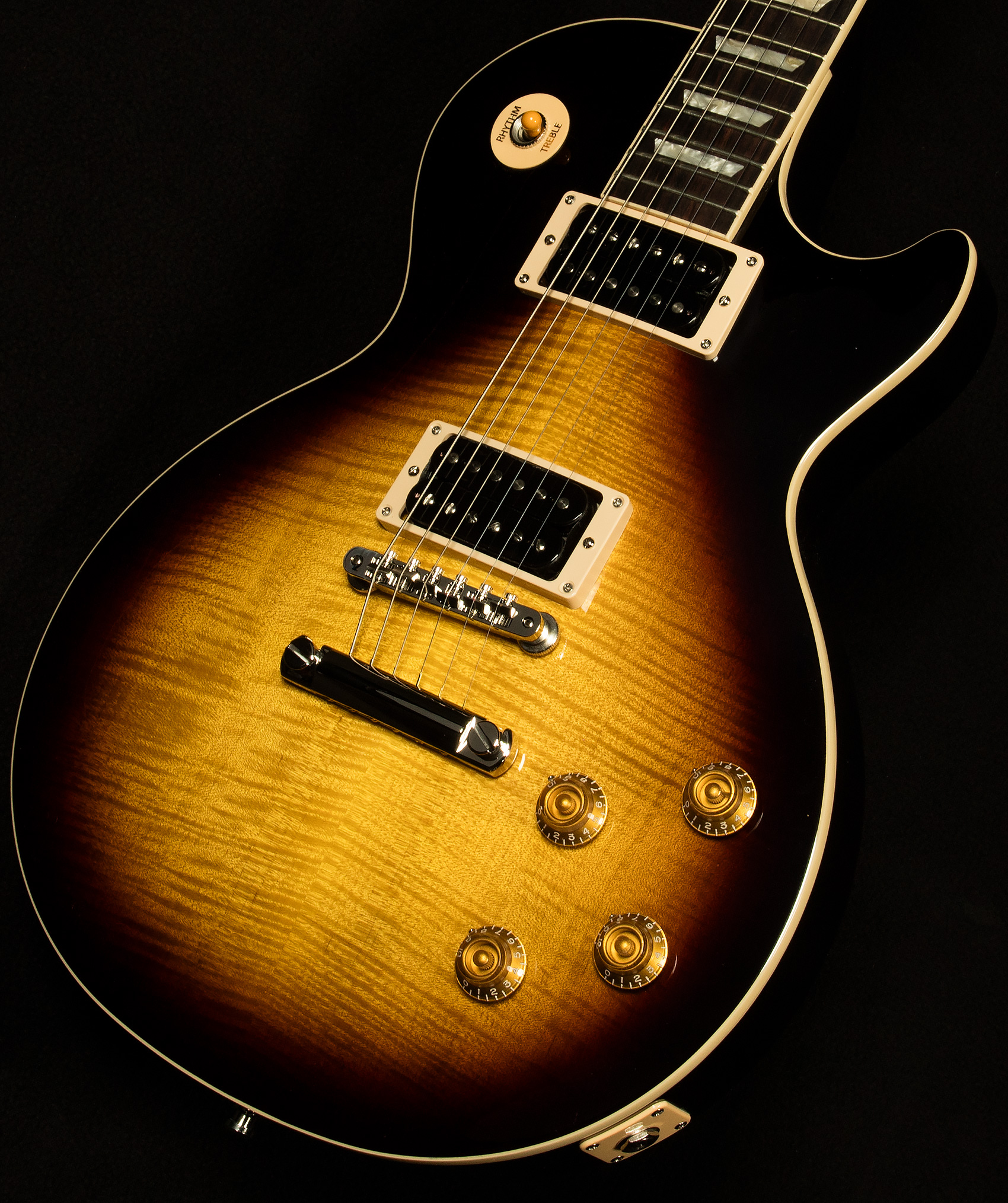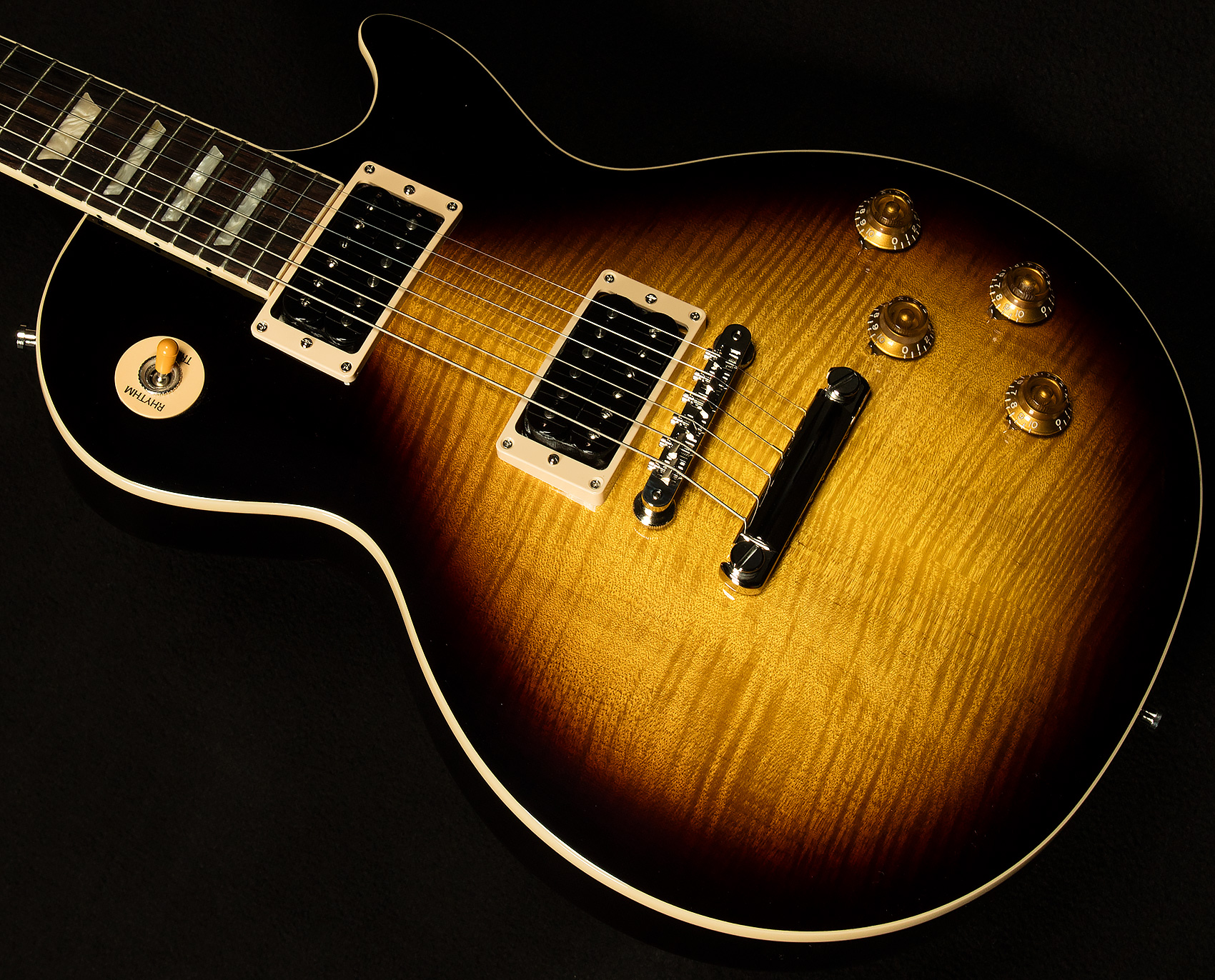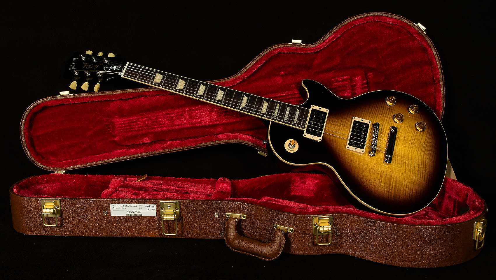 Since Slash is perhaps the greatest Les Paul-slinging icon of the modern era, Gibson really pulled out all the stops for the Slash Les Paul Standard. Each of these guitars sports a sweet finish Slash-approved finish over a gorgeous AAA flamed maple top and an uber-comfy '50s Vintage neck profile. As a result, these guitars play beautifully, and they have jaw-dropping, drool-inducing looks.
