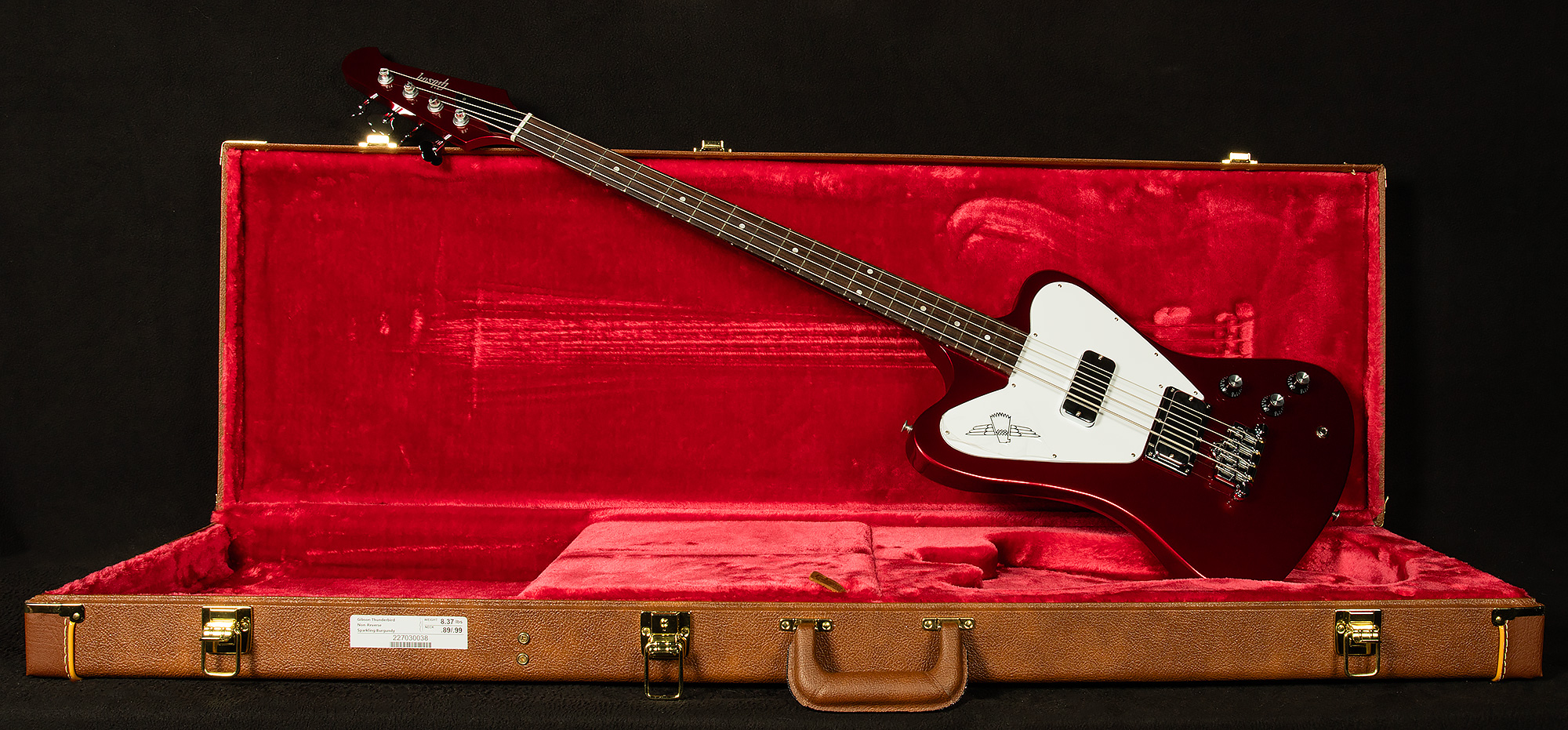 Ever since it was first released back in 1965, the Non-Reverse Thunderbird has been THE choice for forward-looking bassists who want to make their own path and steadfastly refuse to follow the crowd. The Non-Reverse Thunderbird's distinctive styling and huge, thunderous tone make it a standout on stage and in the studio. Now you have the opportunity to make one of these relatively rare 'birds your own with the release of the new Gibson USA Non-Reverse Thunderbird. Equipped with a Non-Reverse mahogany body and mahogany neck with a rosewood fretboard and 20 medium jumbo frets, each of the two Thunderbird pickups has a volume control, allowing you to use them separately, or to blend them in any amount you prefer. A master tone control rounds out the simple yet highly effective control layout. The three-ply white pickguard features the iconic Thunderbird graphic. The Non-Reverse Thunderbird is equipped with a Graph Tech nut. A 3-point adjustable bridge provides a full range of adjustment for action and intonation, while Hipshot® Ultralite® tuning machines hold down the strings at the other end and deliver accurate and stable tuning while keeping headstock weight low to improve balance.