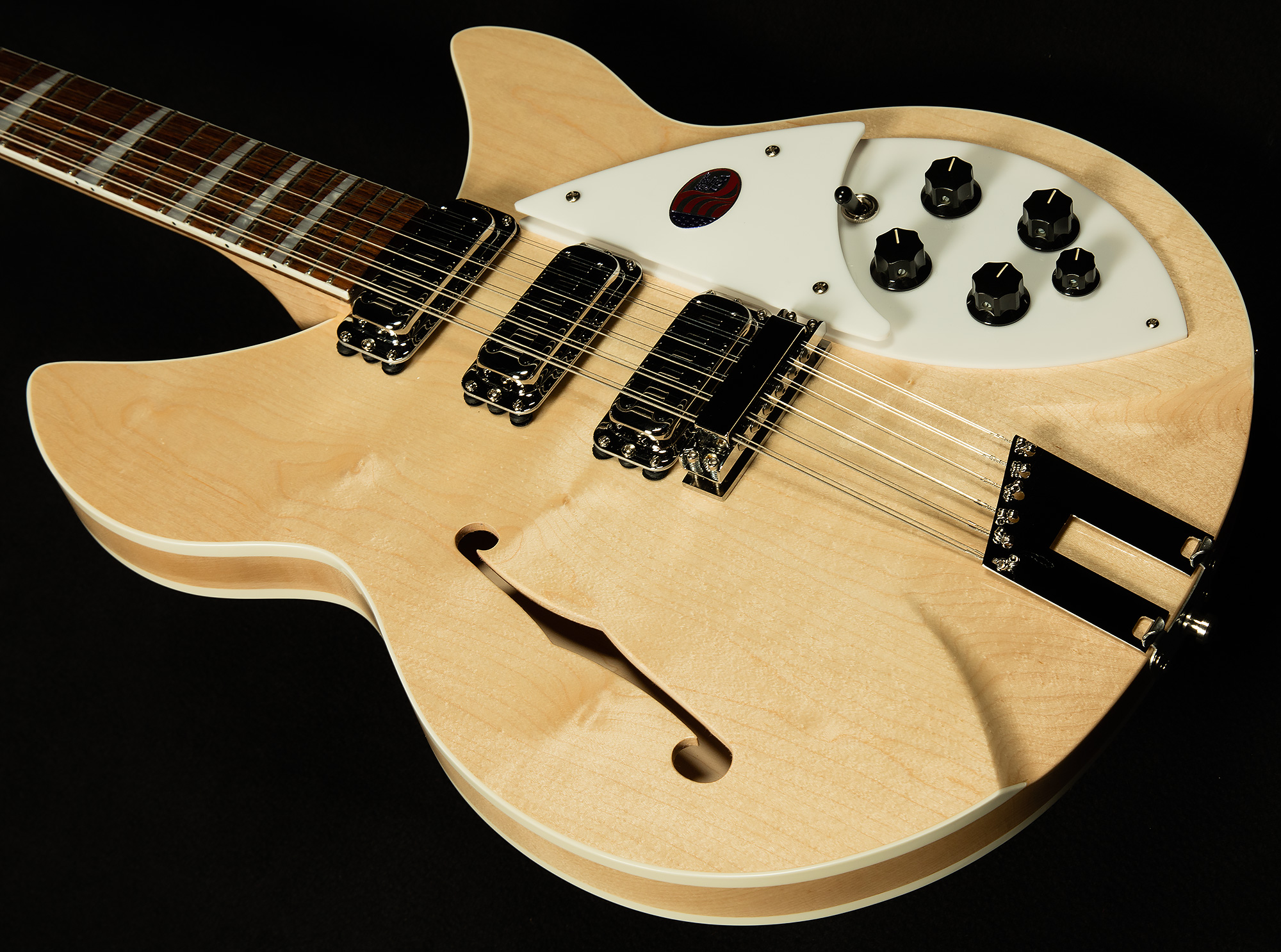 The 1993Plus sets itself apart from the pack in a variety of ways, but the most important one is the way it feels. Rickenbacker made the neck an eighth of an inch wider at the nut to accommodate players who need wider string spacing for intricate picking patterns, rounded off the neck heel to make it more comfortable to play on the higher frets, and made the neck out of two sturdy pieces of maple instead of one to promote greater stability. They've also dropped in three vintage-style toaster pickups to achieve authentic old-school sounds, and added in an x-bracing pattern to bring out a bit more warmth and roundness from the maple body.