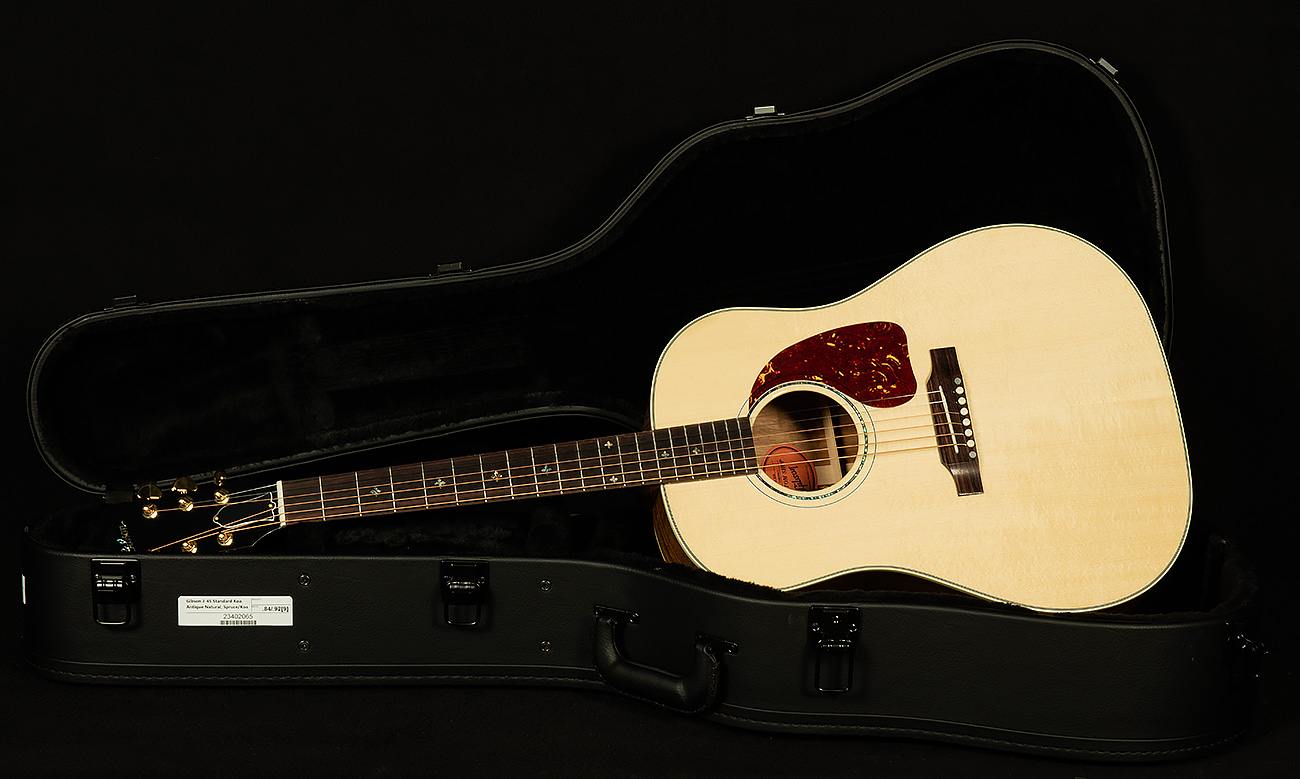 Speaking of resonance, the J-45 Standard sports a nitrocellulose lacquer finish that allows the wood to breathe like a vintage instrument. As a result, these J-45 Standard Koas sing out loud and proud!