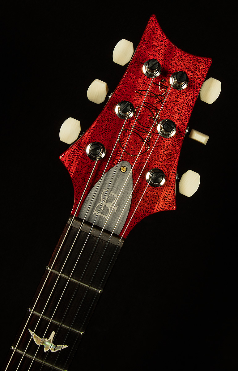 The PRS DGT is a beautiful workhorse. It comes equipped with many delightful features that make it stand out even among PRS's legendary lineup. David Grissom had two favorite PRS axes with atypical neck shapes (perhaps the result of an under- or over-zealous sander). He asked Paul to combine the best parts of both necks to form the DGT's neck profile, and the resulting shape is as buttery as can be. Upon that delightful neck carve, there are 22 jumbo frets to facilitate easy bending.