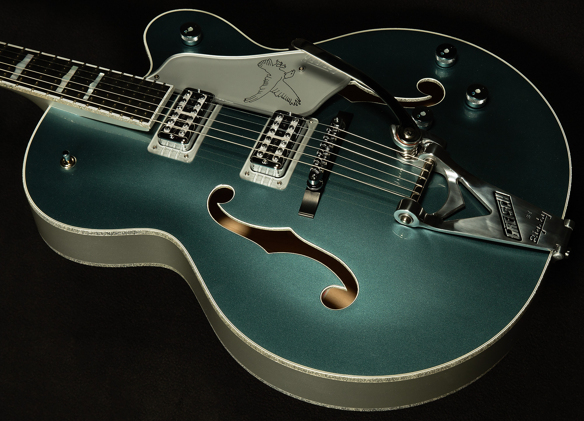 | Pickguard | Silver Plexi with Silver Gretsch Logo & Falcon Graphic |