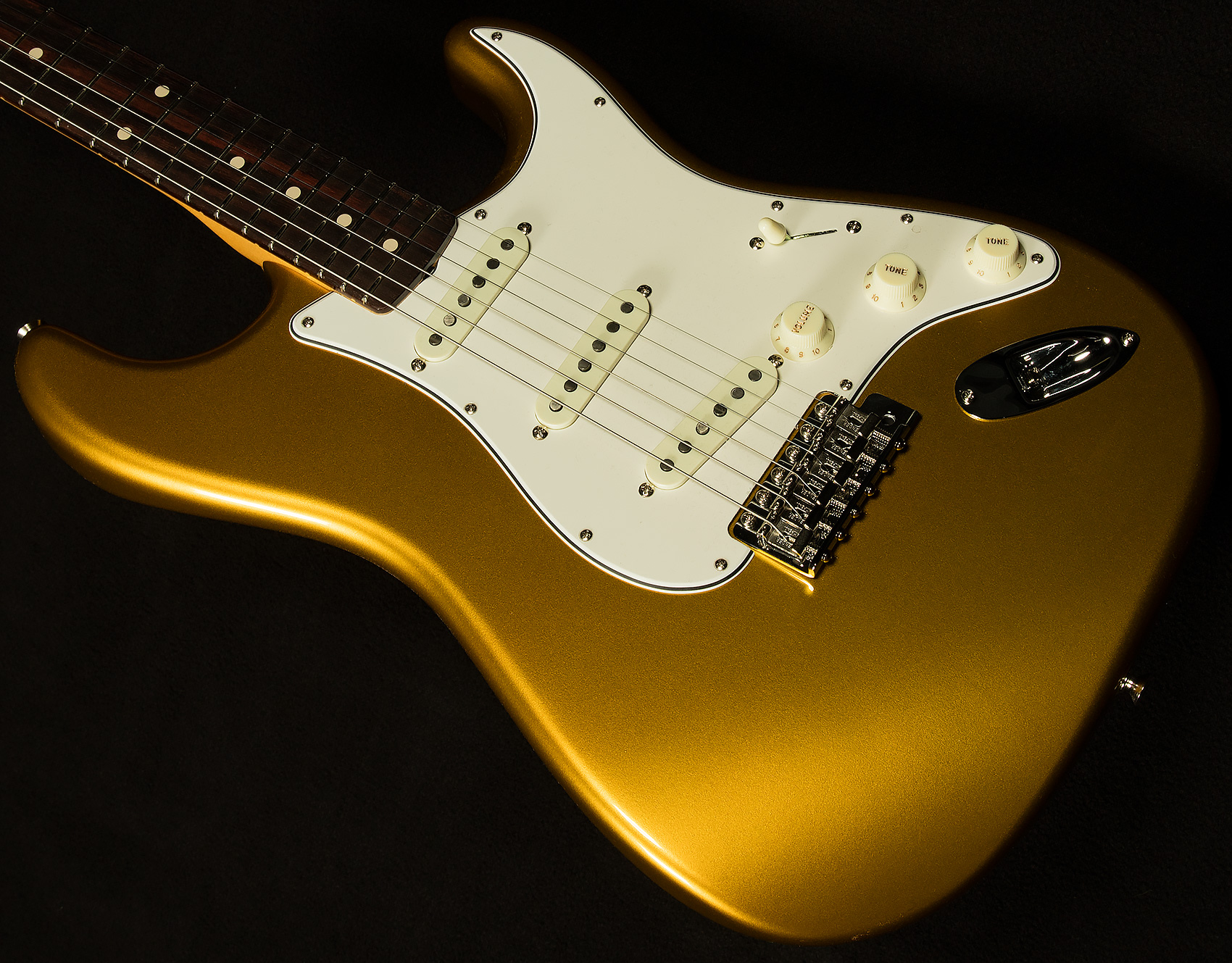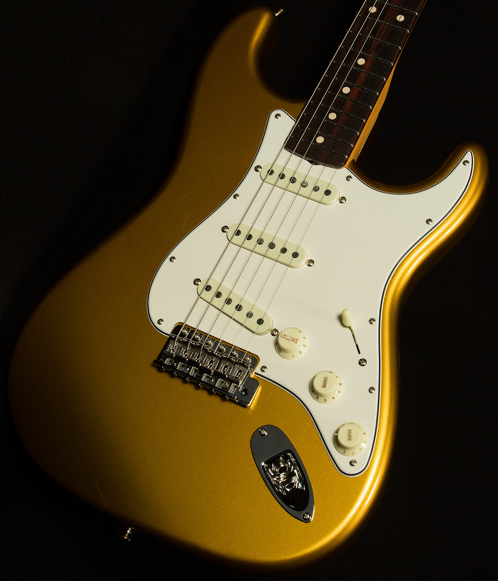 We believe that the Wildwood 10 Strat pickups our friends at Fender wind for us are some of the finest single-coils in the world. Here's a quick rundown of what makes them tick. They're slightly underwound, which gives them exceptional dynamic response and touch sensitivity. You can really alter your sound based on how hard you're hitting, which makes for a wonderfully expressive playing experience. However, they are wound with thicker wire like Fender did in the sixties, which gives them a little more power and guts despite being underwound. As a result, their voice is similar to vintage Strat pickups we love with lots of bell-like chime and vocal response, but with a little extra warmth and muscle.