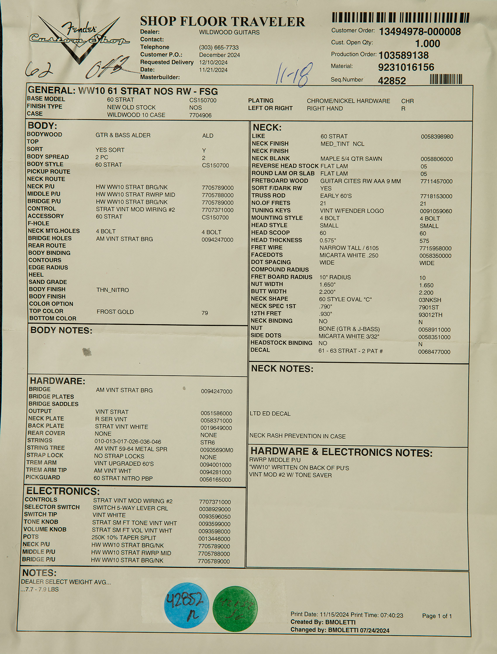 Each of these Custom Shop creations features a thin fifties-style nitrocellulose finish, which allows the voice of the resonant hand-selected tonewoods to shine through. They also have hand-wound Custom Shop pickups that are sure to inspire you to reach new heights on your sonic journey. Wildwood 10s feel great in your hands, too. Their modern 10” radius is suitable for a wide variety of styles and techniques, and their 6105 narrow-tall frets allow you to expend less energy with your left hand, especially when bending strings. To top it all off, they come with a limited edition Dealer Select Wildwood 10 hardshell case and a certificate of authenticity.