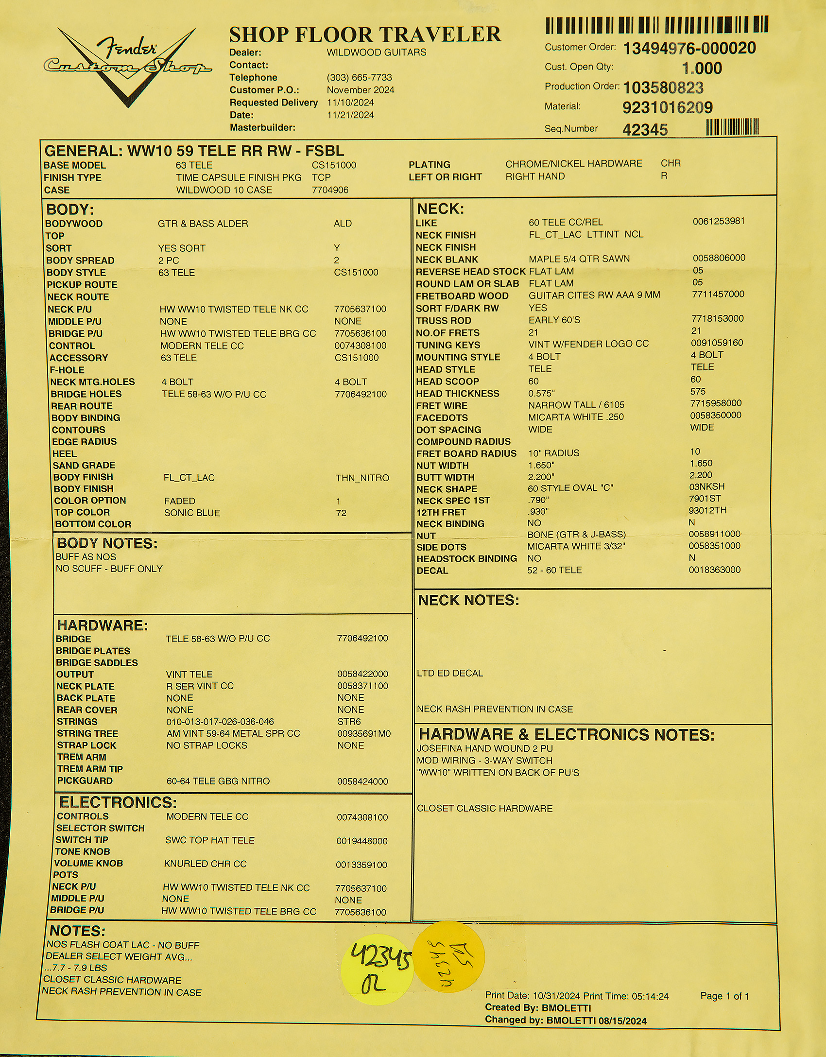 After playing and ogling the first batch of these guitars, we feel confident that this line is easily one of the coolest collaborations in the history of our friendship with Fender’s Custom Shop! At Wildwood, we’ve been doing our best to tell our guitars’ stories as faithfully as we can for thirty-four years. Now, we are excited to step aside and give the reins to our exceptional customers. What sort of interesting tales will you carve into these finishes? We can’t wait to find out with you!