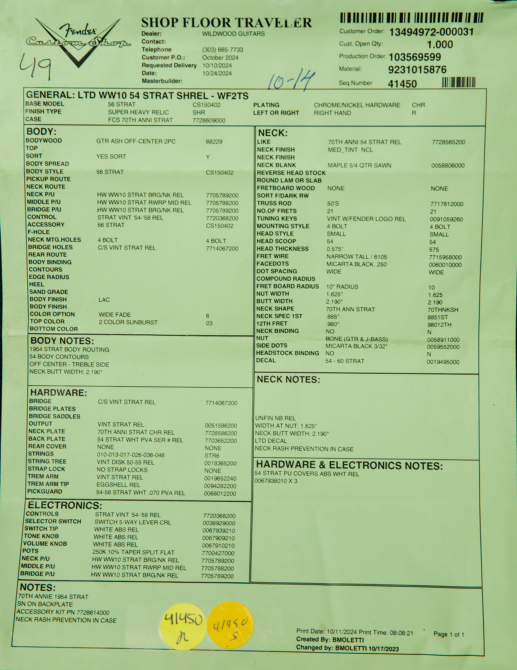 | Model | LTD Dealer Select Wildwood 10 70th Anniversary '54 Strat |